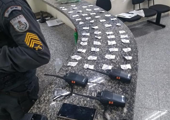 De acordo com informe da Polícia Militar, policiais de uma Patamo averiguavam denuncia contra o tráfico de drogas na comunidade e flagraram o adolescente na Rua Leite com 50 papelotes de cocaína e três rádios transmissores que estavam escondidos embaixo de uma caixa d´água. O celular do acusado e R$ 25 também foram apreendidos pelos PMs.